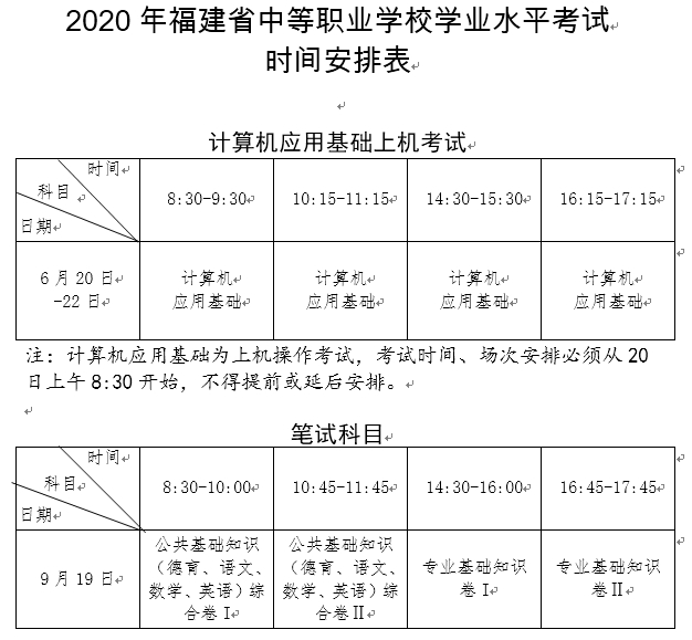 1.2020年福建省中等职业学校学业水平考试时间安 排表