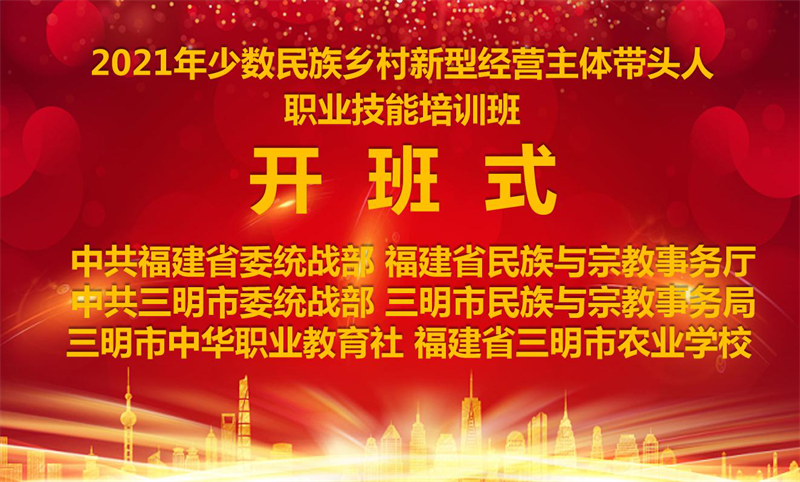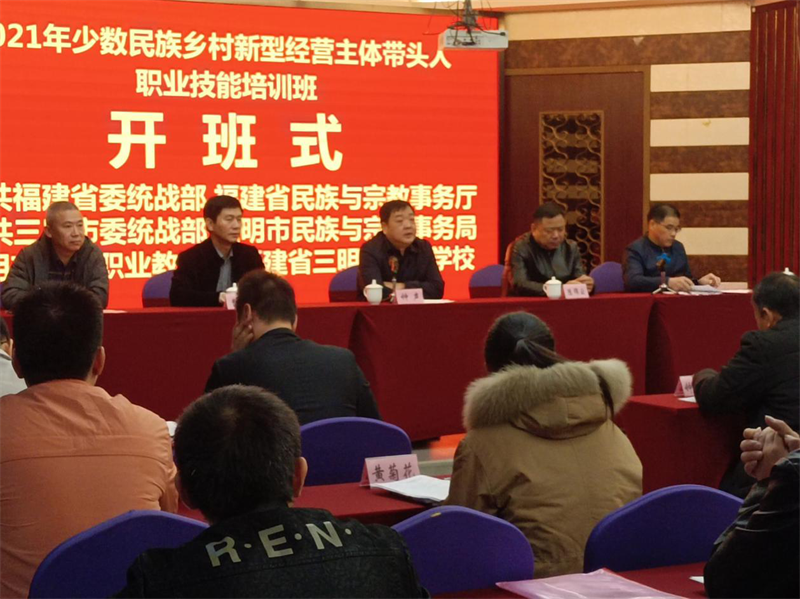 本次培训班由中共福建省委统战部、福建省民族与宗教事务厅主办,中共三明市委统战部、三明市民族与宗教事务局承办,三明市中华职业教育社、三明市农业学校协办。开班式由市民族宗教局副局长赖德农主持,省民族宗教厅二级巡视员钟声作主旨讲话,参加开班式的还有省民族宗教厅陈锦云处长、市委统战部一级调研员曹观生、华体会(中国)谢阳军副校长等同志。