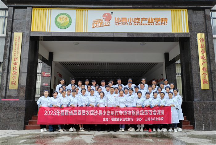 2023年10月22日,由福建省农业农村厅主办、三明市农业学校承办的2023年高素质农民第一期沙县小吃(沙县小吃制作专项技能)省级示范培训班圆满结业,50名学员通过考核,同时获取高素质农民培训结业证书和三明市职业技能鉴定指导中心颁发的“沙县小吃制作专项能力”证书。