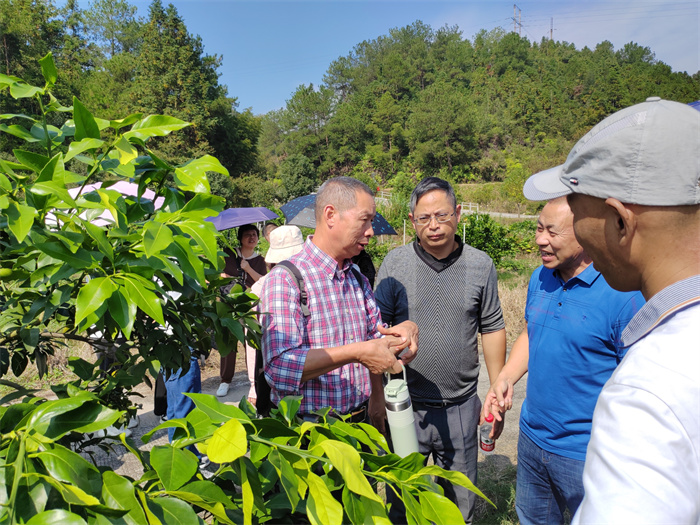 图2:涂景春老师带领学员在将乐常口柑橘种植基地现场教学